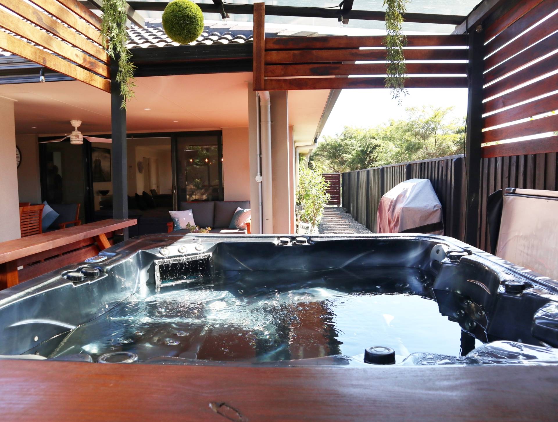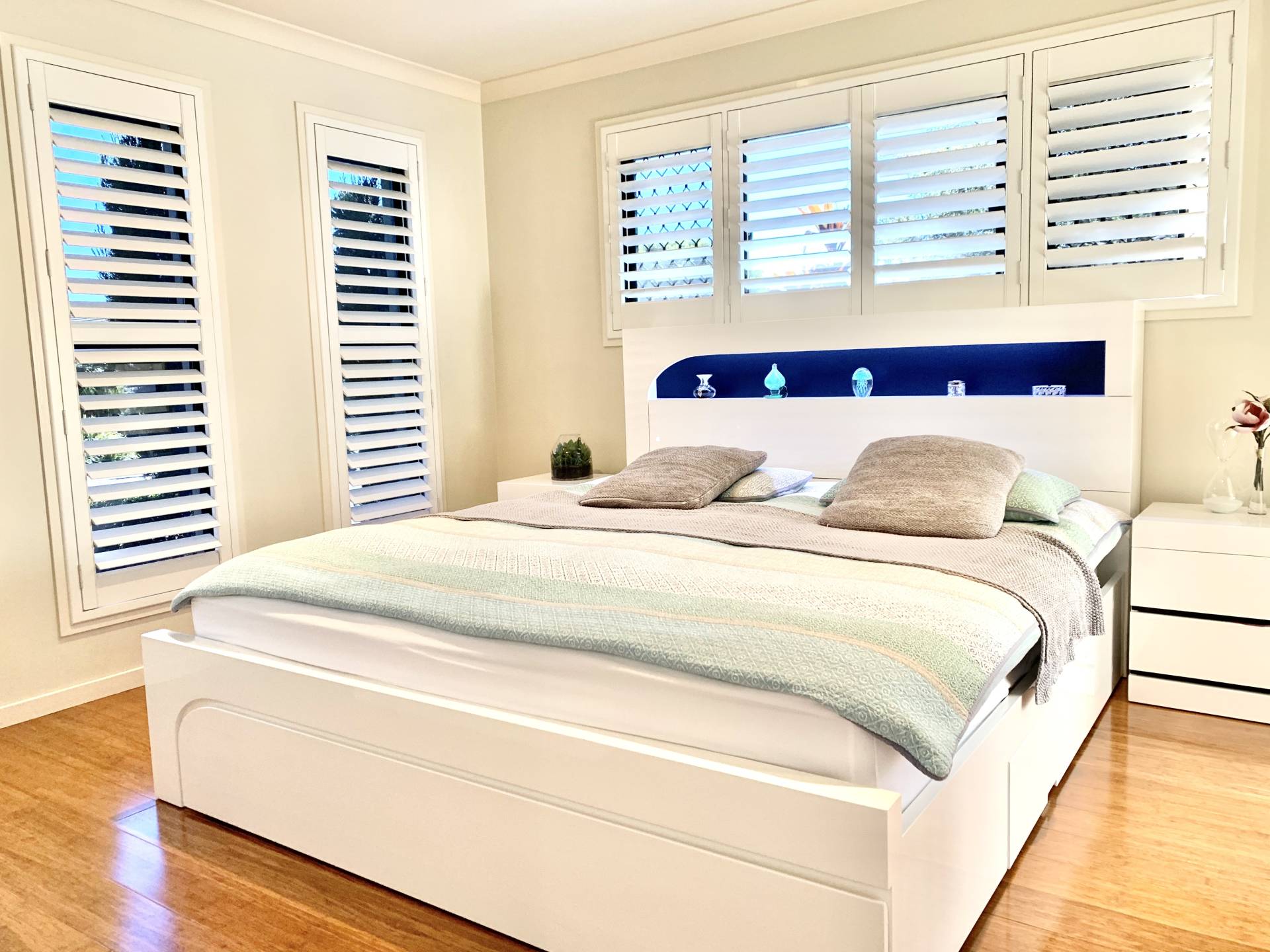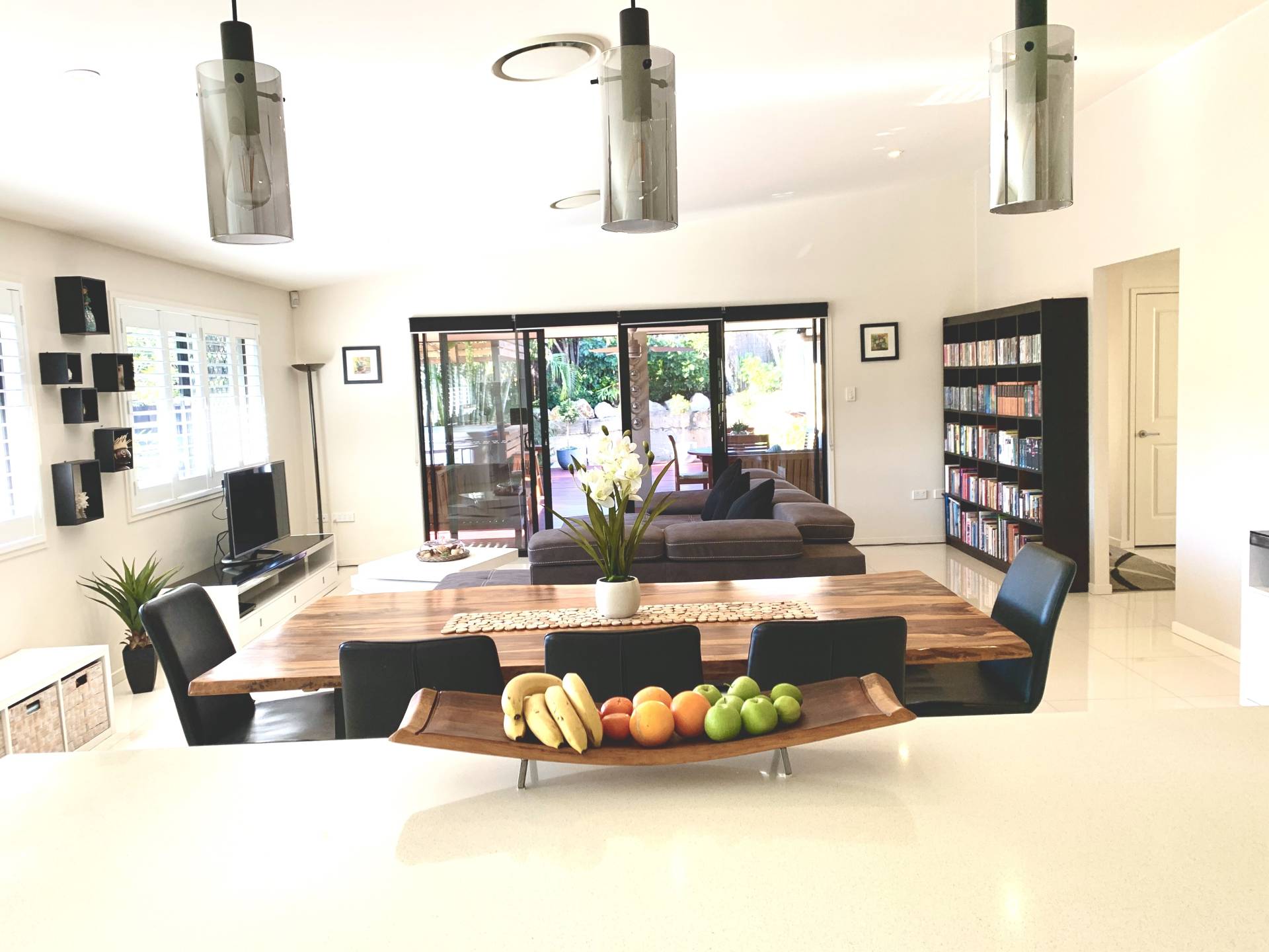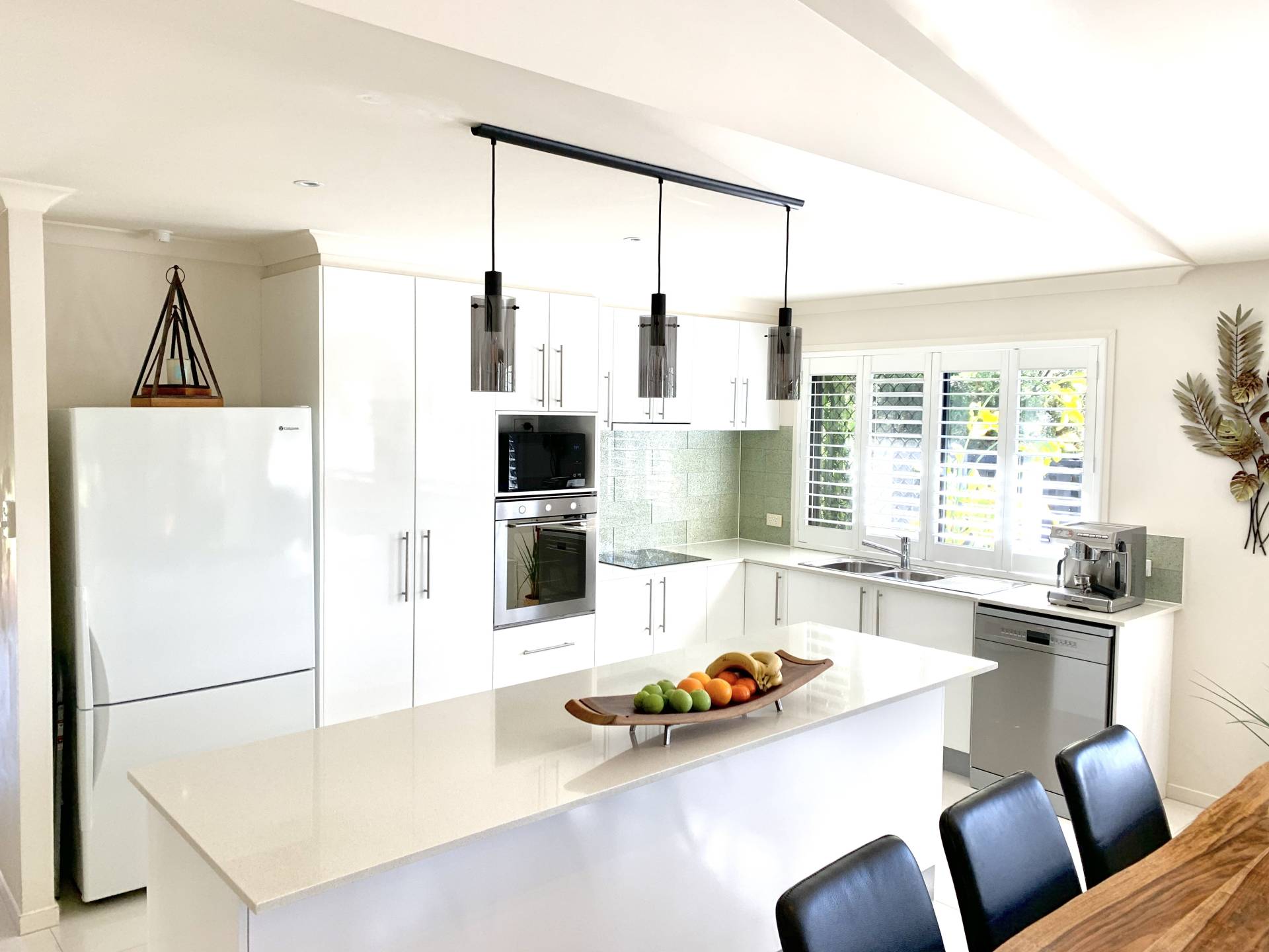 From the moment you walk in it is obvious that this home is at the top end of the scale with luxury plantation shutters , polished porcelain tiles, stone benchtops throughout, huge shower recesses, a large alfresco with timber deck and luxury spa and a low maintenance yard.  The central kitchen showcases plenty of bench space with gloss cupboards and European appliances and overlooks the large open plan family room so guests and hosts are all included when entertaining. It is bright and airy and has a wonderful calm feeling to it.