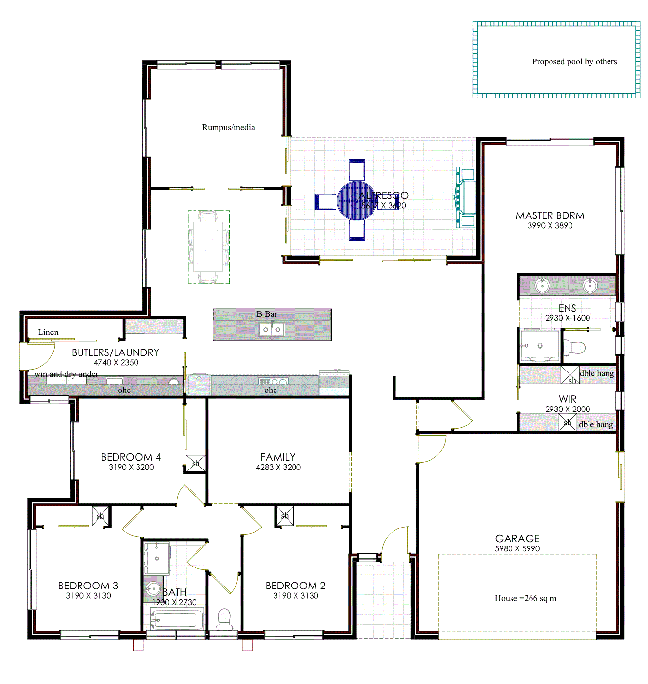 The kitchen has been designed as the hub of the house - central to the dedicated meals ares- separate rumpus room- open to the alfresco and with a huge butlers/laundry combination room off to the side.