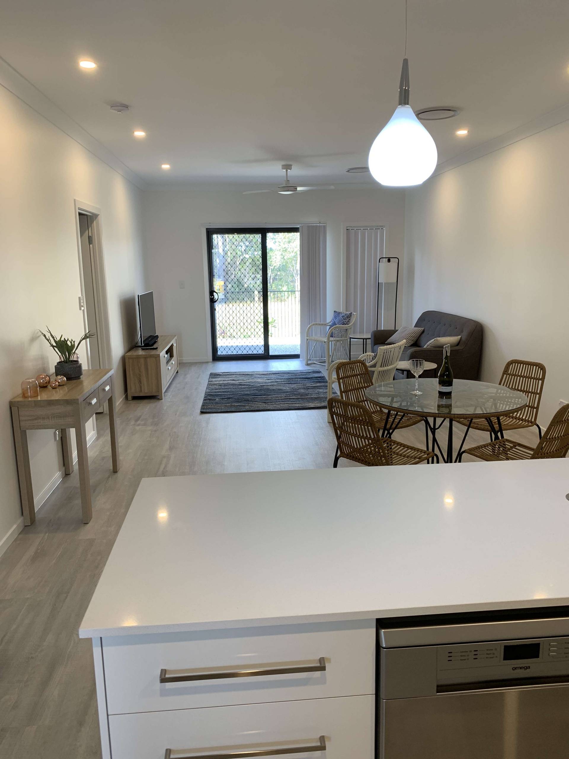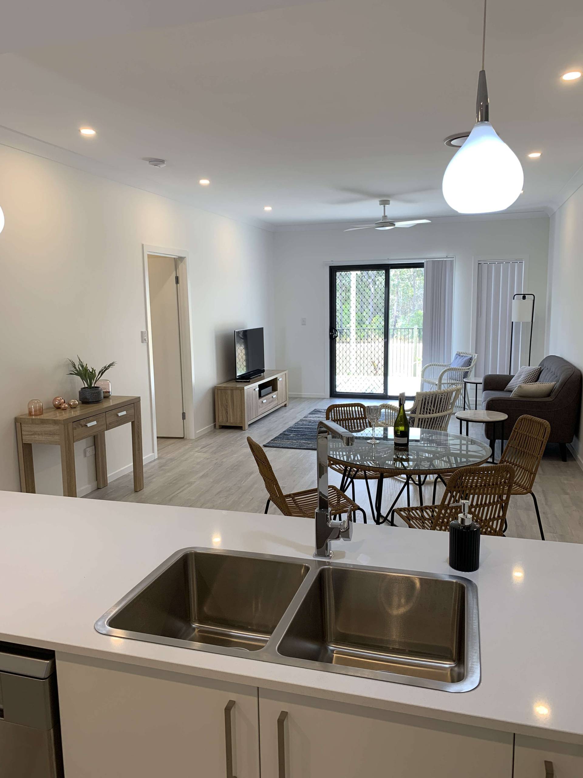 The family/living area opens out to an undercover alfresco with views over open parkland. The garden is fully fenced and has low maintenance plants with irrigation to keep the plants alive with minimal effort by you.