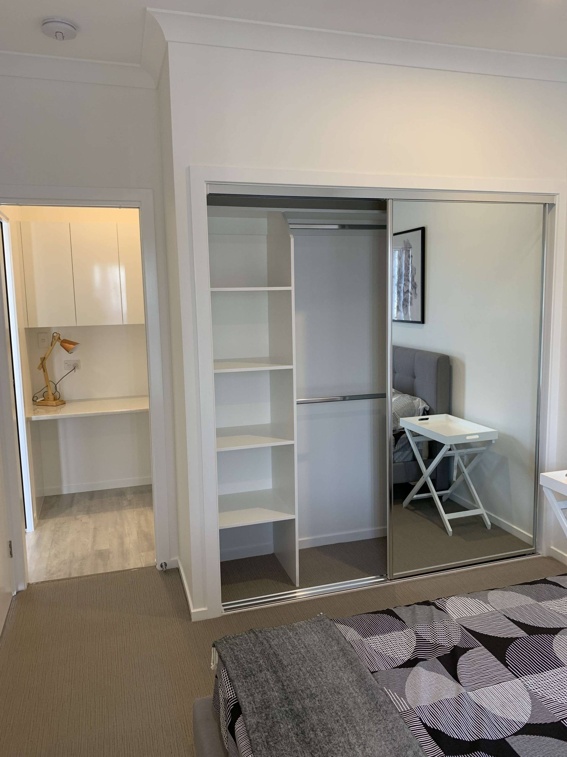 Robes with shelving and double hanging.