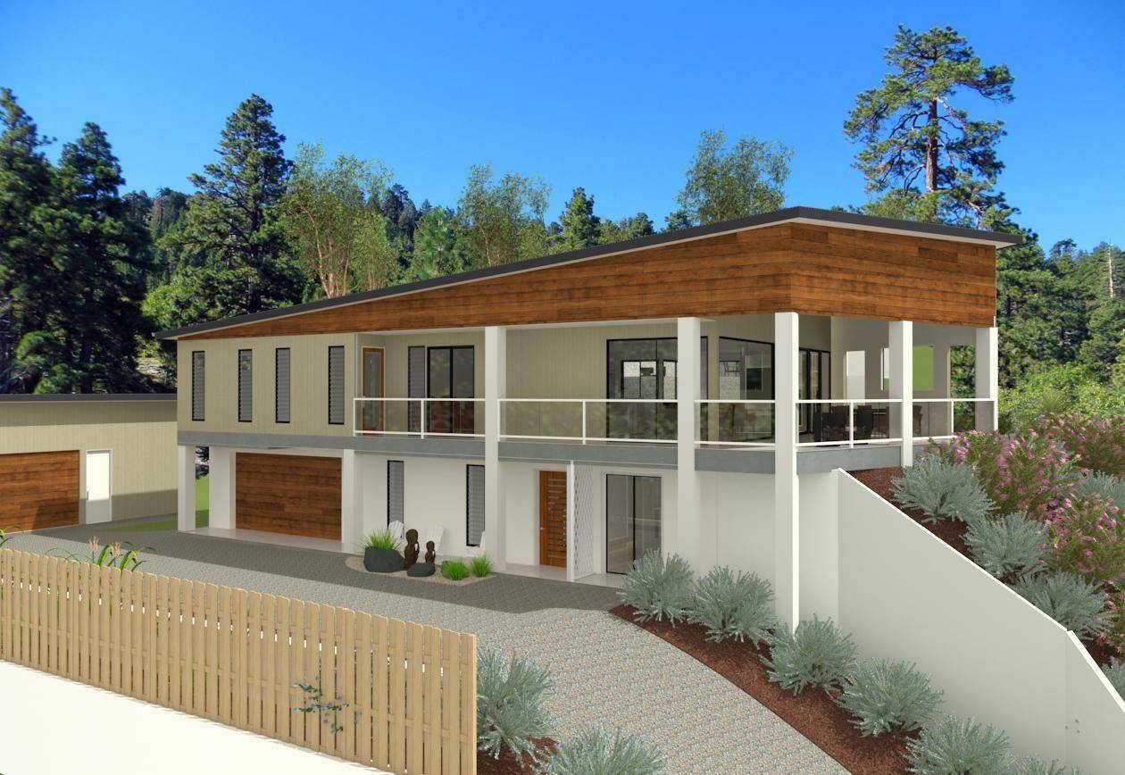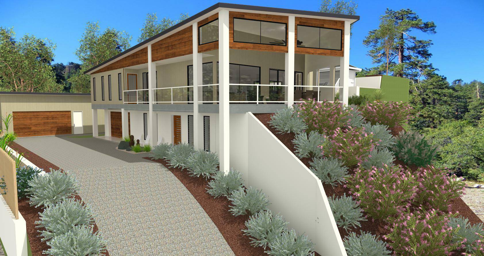 It is sloping land but the enclosed house designs will give an idea of how to create a really interesting home for the family.