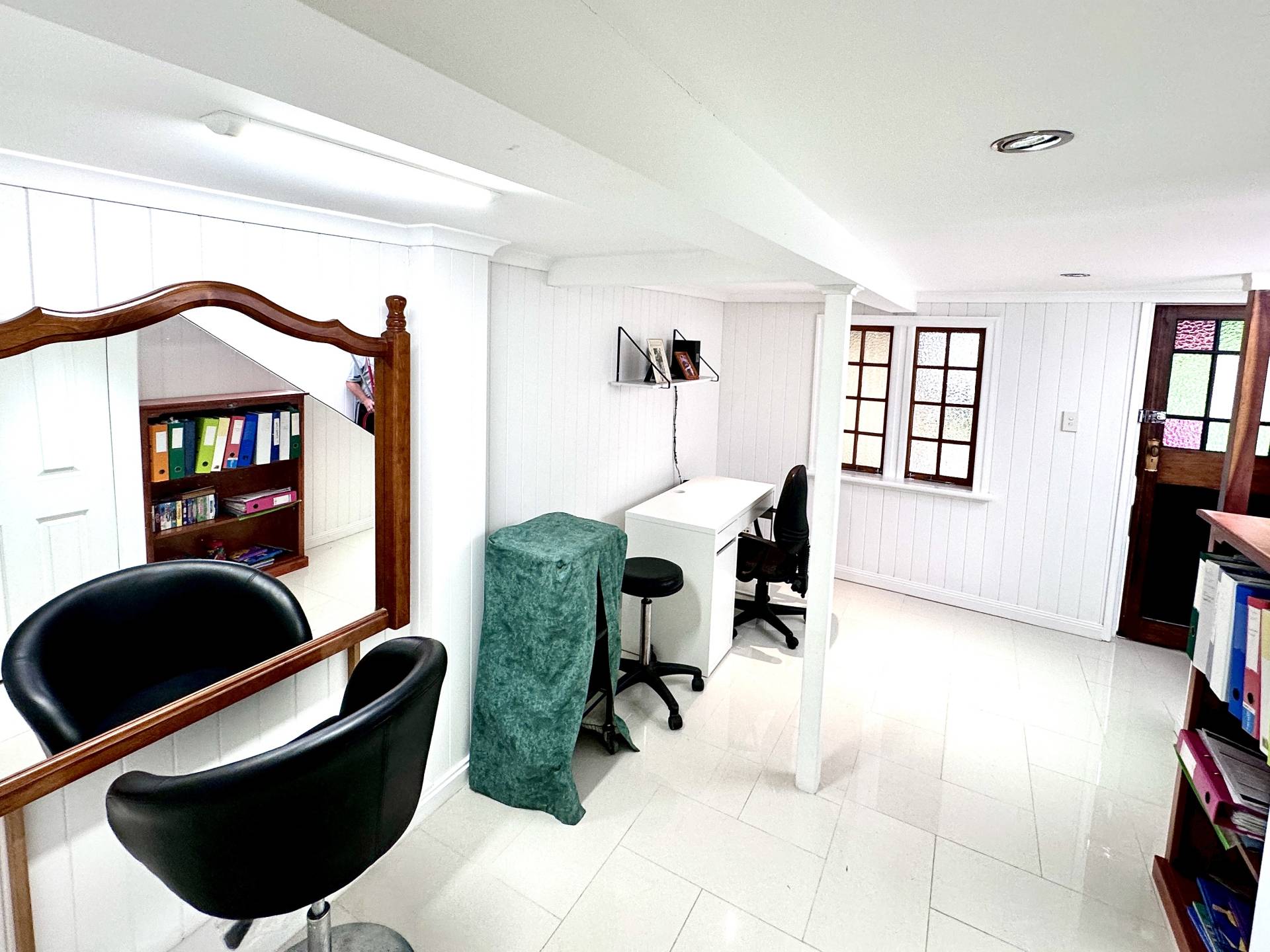 There is an enclosed workshop/storage area under the home as well as a 5000 litre water tank; an office area, the laundry, and potential hairdressing business area.
