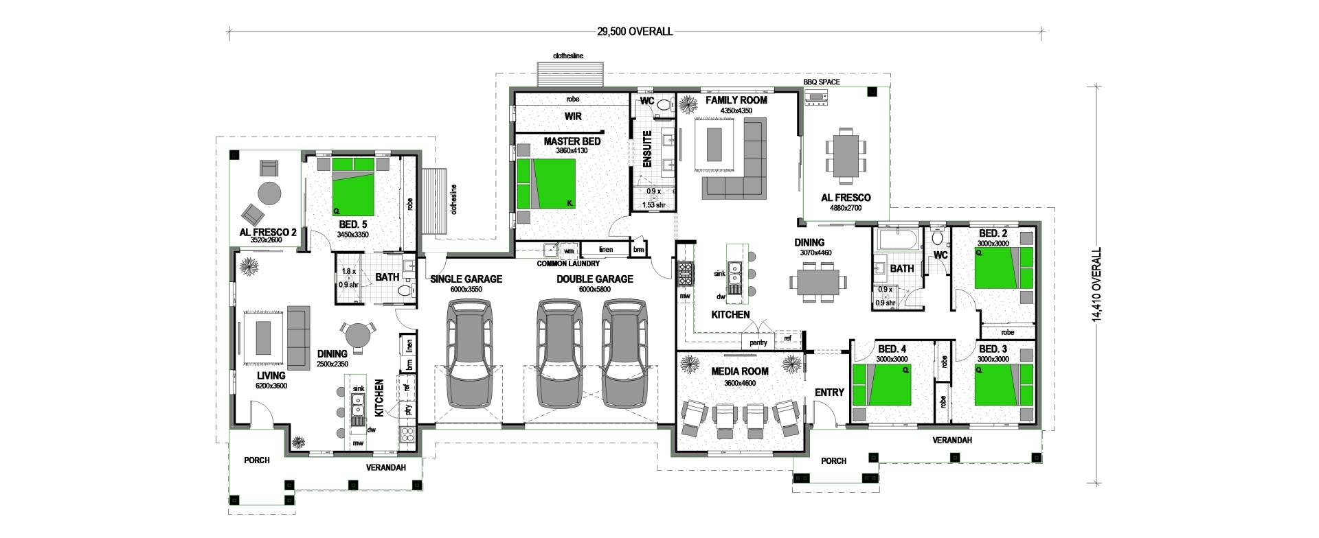 There are 4 bedrooms with walk-in robe to the Main Bedroom, a separate media/lounge room, a chefs kitchen with lots and lots of bench space, a private alfresco, and a double garage; and an attached 1 bedroom Granny flat with combined living-dining, its own alfresco area and a single garage.
